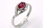 Anello in oro bianco 750 °/°° con un rubino taglio ovale del peso di ct. 0.55 e dei diamanti taglio brillante del peso complessivo di ct. 0.05, colore G-H, purezza SI. Tutte le pietre sono naturali. Garanzia Biffigioielli.