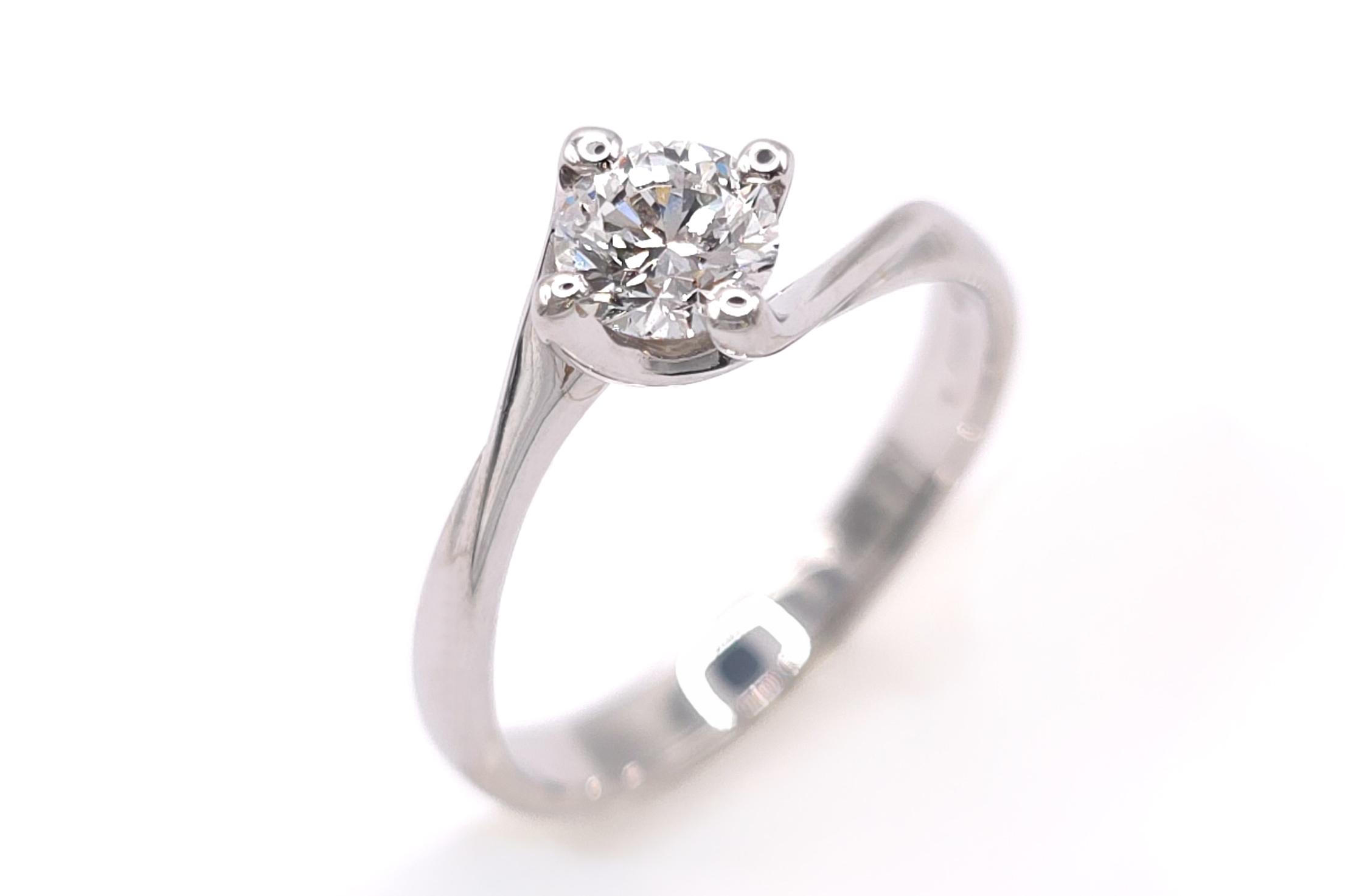 Anello in oro bianco 750°/°° con diamante naturale taglio brillante del peso di ct. 0.50. Colore D, purezza VS1, dal taglio Excellent, Excellent, Excellent. Certificato internazionale GIA. Incisione laserscribe del numero di certificato sulla pietra. Garanzia Biffigioielli.