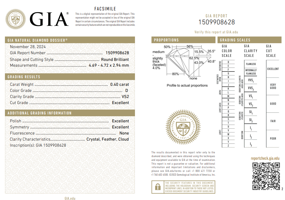 ANELLO SOLITARIO CON DIAMANTE NATURALE TAGLIO BRILLANTE CT. 0.24 CERTIFICATO GIA
