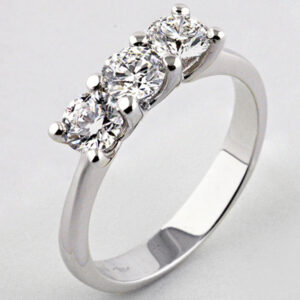 Anello in oro bianco 750 °/°° con tre diamanti naturali taglio brillante del peso di ct. 1.20. Colore D, purezza VS1. Taglio Excellent, Excellent, Excellent. Certificato internazionale GIA con incisione laserscribe del numero di certificato su ciascuna pietra. Garanzia Biffigioielli.