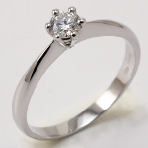 952,00€ IVA InclusaAnello solitario in oro bianco 750 °/°° con diamante naturale taglio brillante del peso di ct. 0.22, colore F, purezza VS. Garanzia Biffigioielli.