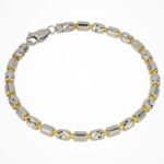 Bracciale da uomo in argento rodiato e dorato 925 con Trattamento ITProLux (placcatura anti-ossidazione che mantiene la brillantezza e prolunga la durata). Elementi cilindrici con effetto diamantatura. Lunghezza 19.5 cm. Garanzia Desmos valida 2 anni.