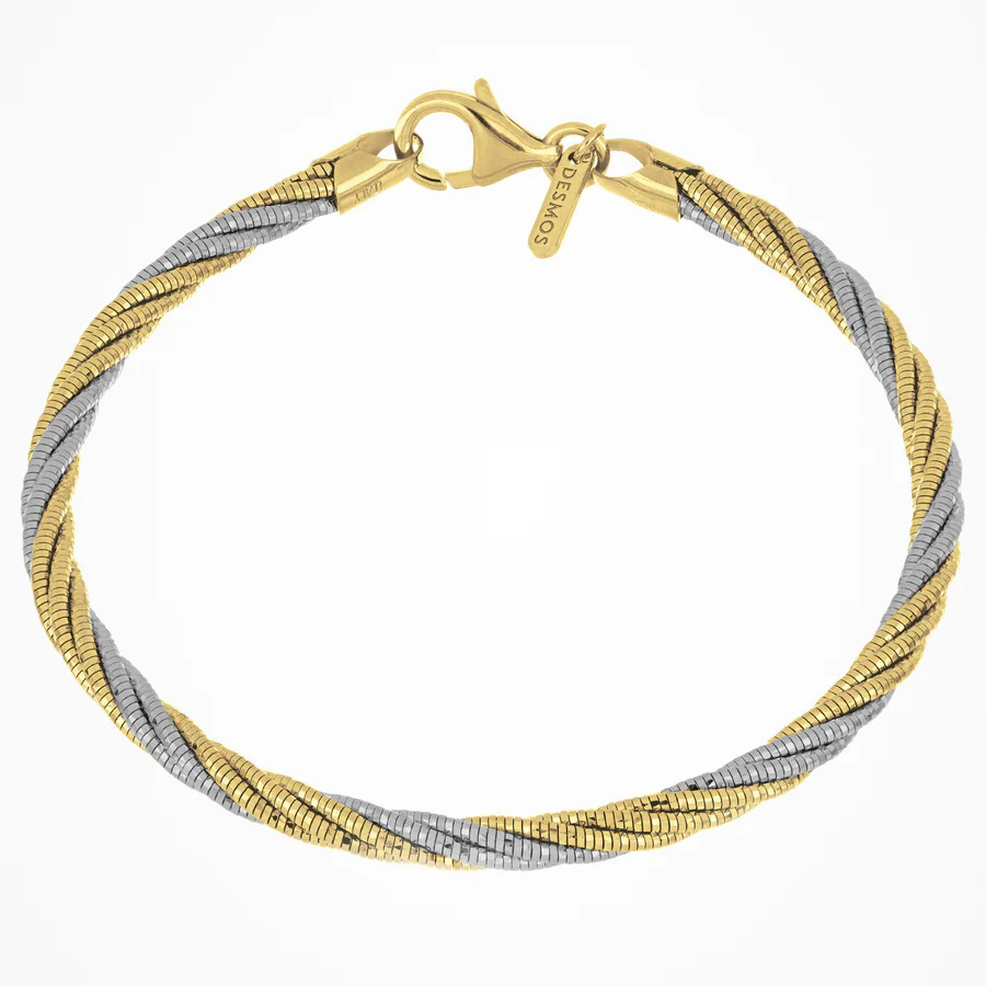 Bracciale rigido uomo in acciaio e oro giallo