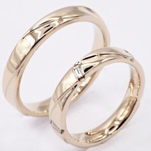 Fedi nuziali Polello collezione “Anniversario 50” in platino e oro giallo 750 °/°° con dei diamanti taglio baguette del peso complessivo di ct. 0.13 sulla donna. Larghezza 4.50 mm. Incisione in omaggio.