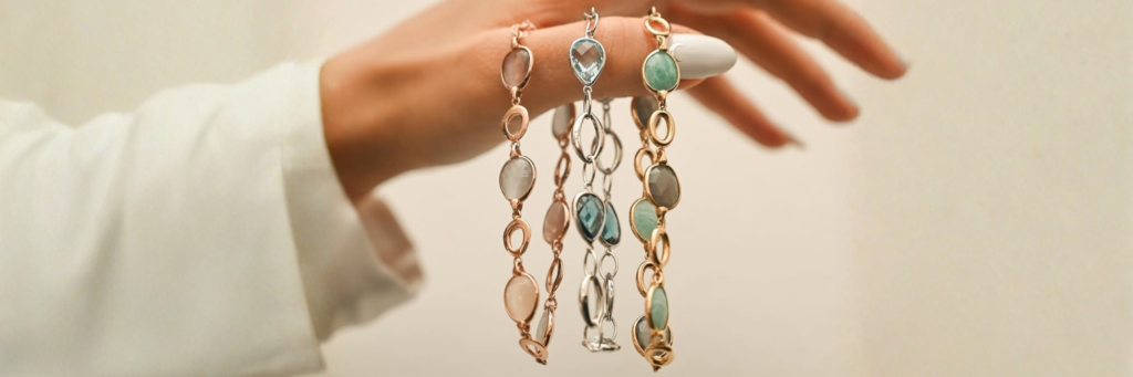 Scopri la nostra selezione di gioielli in oro, un universo di eleganza che racchiude bracciali, collane e orecchini impreziositi da diamanti, perle e pietre colore. Ogni creazione è pensata per valorizzare la tua personalità con uno stile raffinato e senza tempo, unendo la qualità dell’oro alla luce unica delle gemme più preziose. Dai dettagli più delicati ai design più ricercati, questa categoria riunisce gioielli perfetti per celebrare momenti speciali o per regalarti un tocco di lusso quotidiano.
