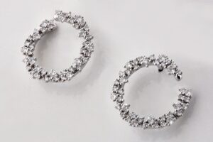 Un’altra tendenza che sta prendendo piede è quella degli orecchini asimmetrici: non è più necessario che i due lati siano identici. Si può indossare un punto luce da un lato e un pendente dall’altro, oppure giocare con colori diversi, magari un diamante bianco accostato a uno nero. Questa libertà spezza la rigidità della tradizione e dona freschezza al gioiello, trasformandolo in un segno di personalità.